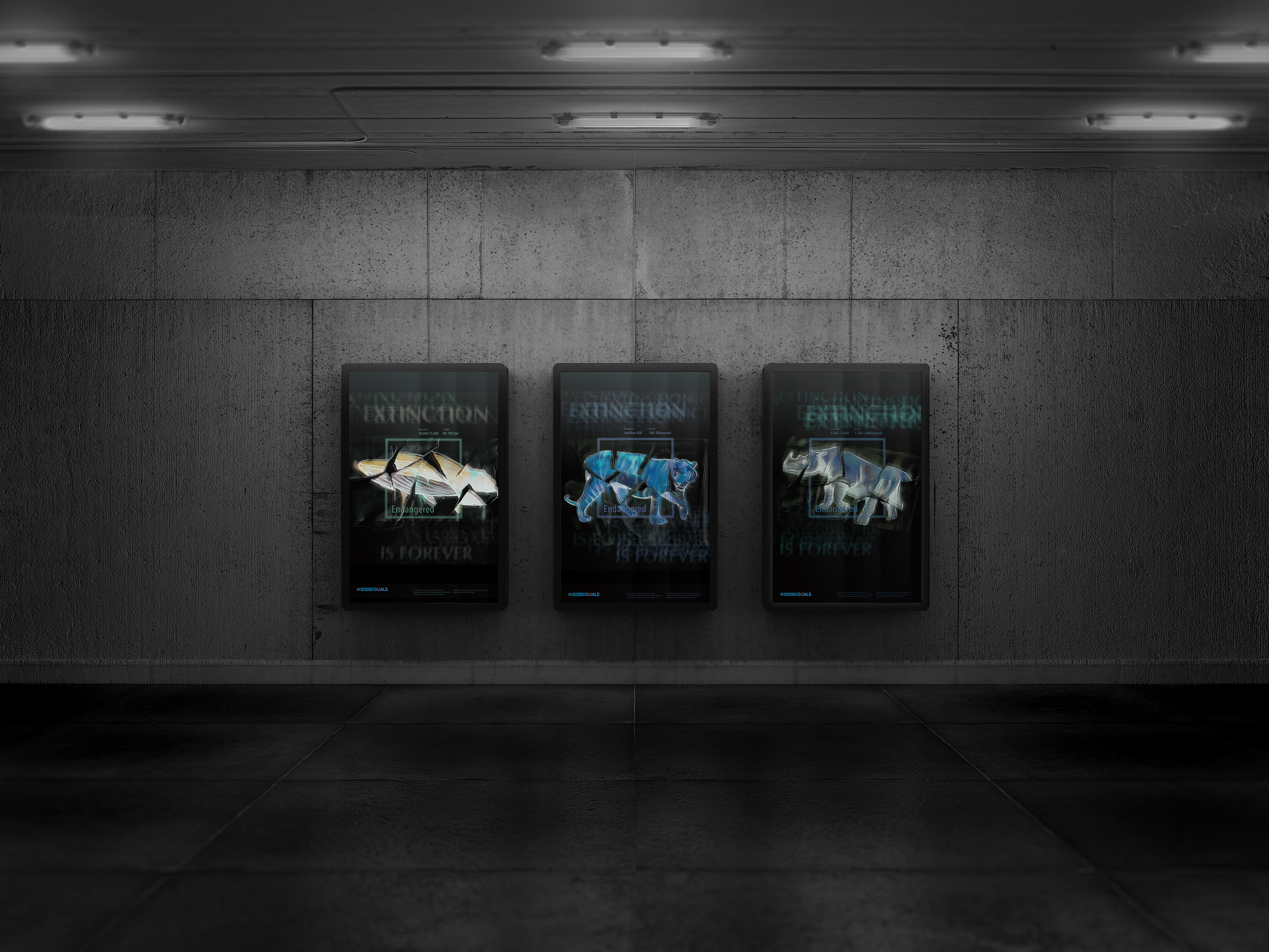 'Extinction is Forever' inspired by 'Classic of Mountains and Seas' 《山海經》, presenting the endangered animals with a mystical, broken visual, as the future generation can only saw the animal again in their imagination.